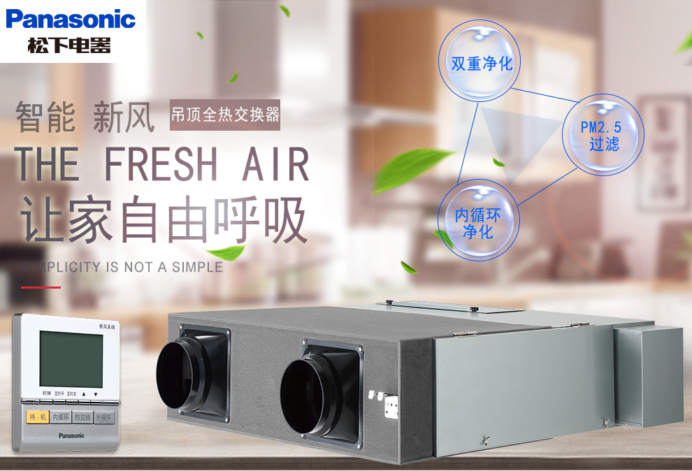 松下(Panasonic) 新风系统PM2.5过滤家用全热交换器新风机换气机空气净化器 FY-15ZJD2C