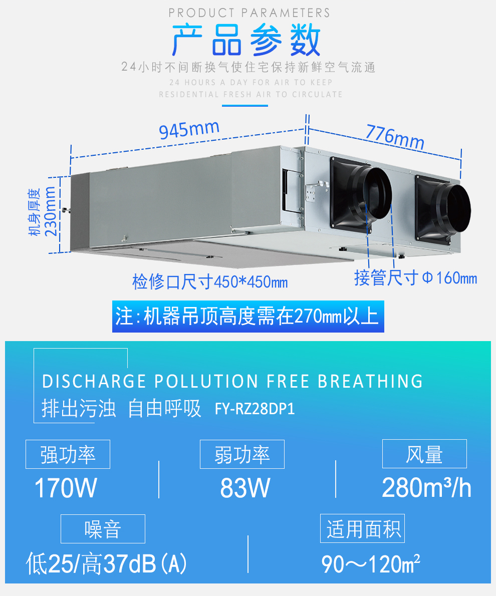 类型:新风系统 安装方式:普通吊顶式 功能:除甲醛 适用人群:家装人群
